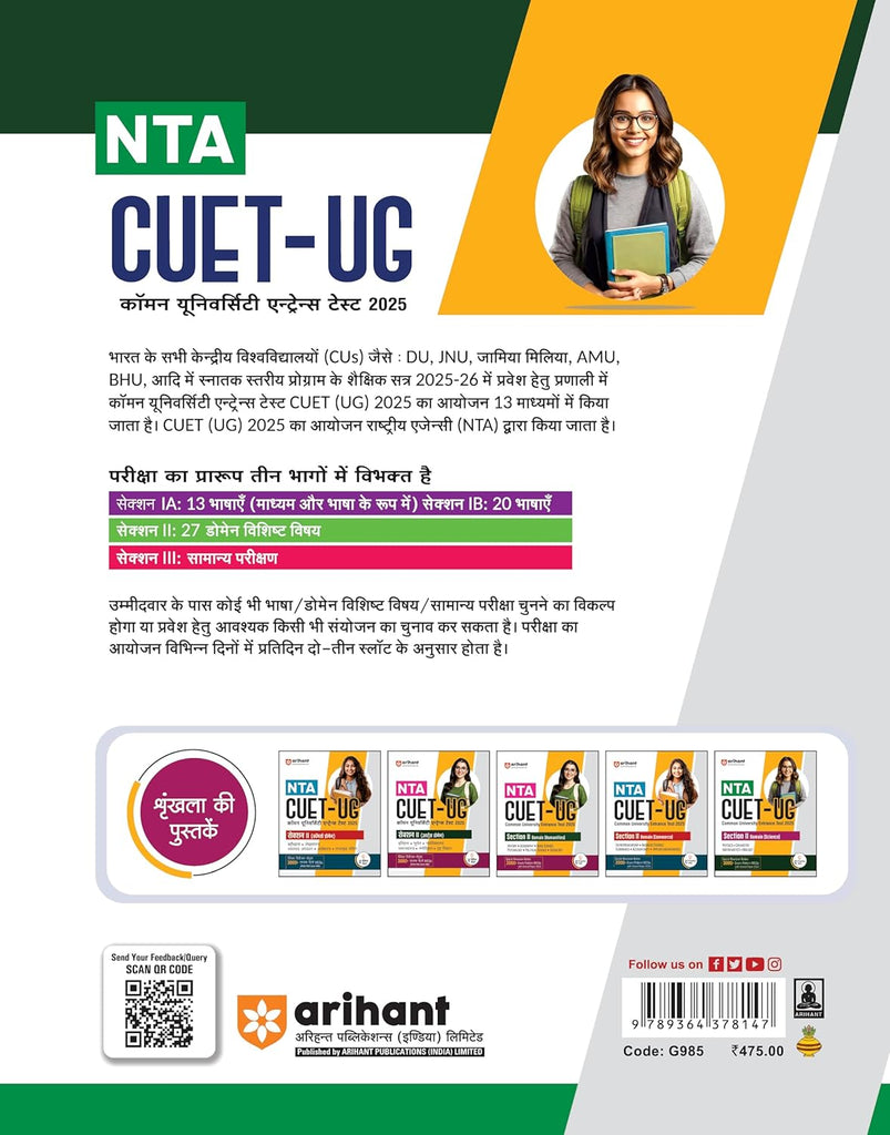 This study guide stands out as a comprehensive, well-organized resource tailored specifically for CUET aspirants. Every element- from the concise revision notes to the diverse question sets- is geared towards helping aspirants secure an edge in CUET aspirants. With this book, aspirants will have a complete toolkit to review, practice, and test their knowledge, boosting both competence and confidence for exam day.