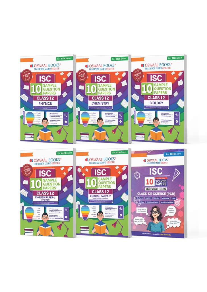 ISC Class 12, 10 Sample Question Papers + 10 Previous Years' Solved Papers PCB- Physics, Chemistry, Biology, English-1, English-2 (Set of 6 Books) for 2026 Board Exams