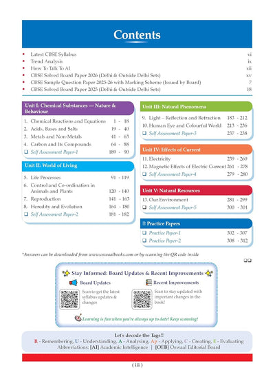 Oswaal CBSE Question Bank for Class 10 Science | Chapter-wise and Topic-wise: Solved Papers (2017-2026) | Includes 2026 Papers- fully solved | With Mind Maps & Revision Notes For 2027 Exam